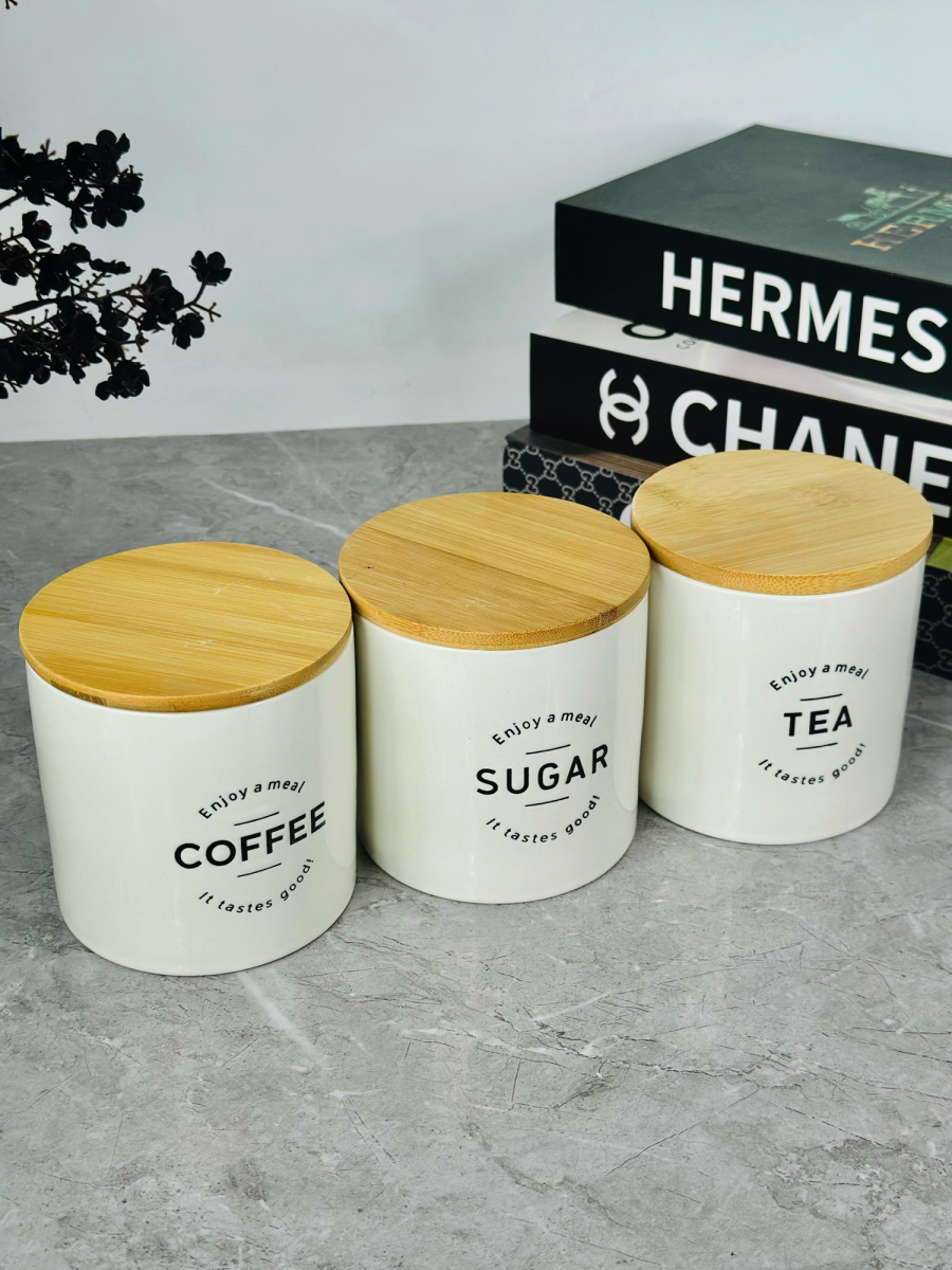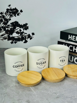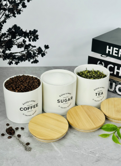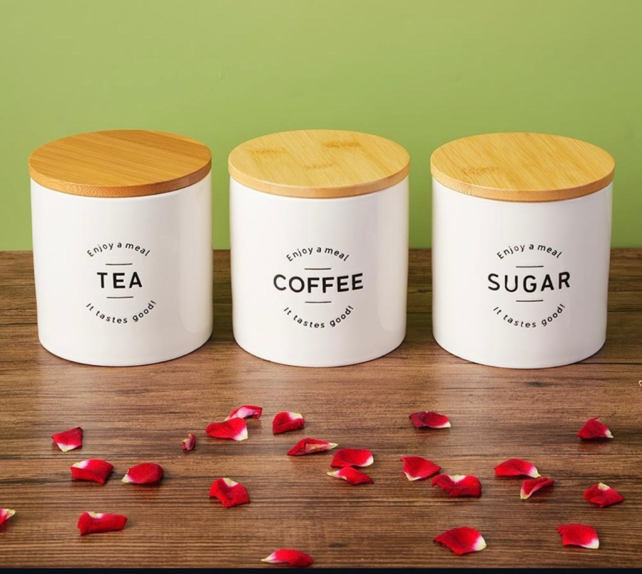 طقم سكر وشايي سيراميك قاعدة بامبو صغير 42