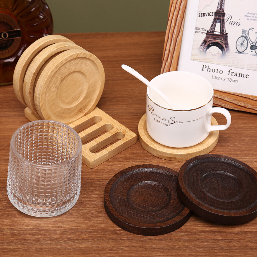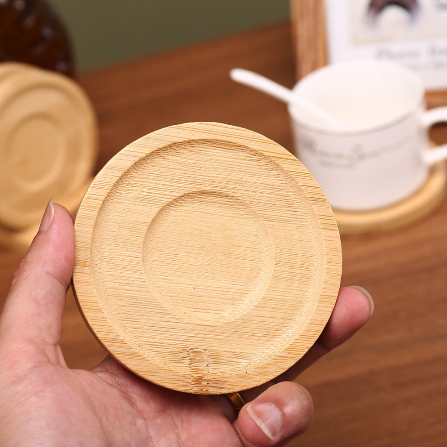 طقم سكر و شايي و قهوه سيراميك و قاعدة بامبو bh-4