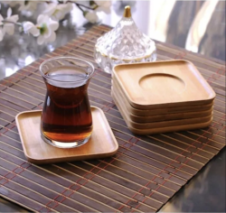 طقم سكر و شايي و قهوه سيراميك و قاعدة بامبو bh-1