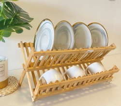 رف منظم بامبو ثلاث طبق خشبي کبیر 40*40*20سم