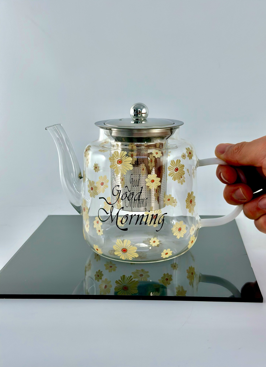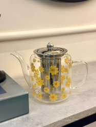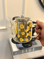 قوري زجاج بايريكس اصلي يدة خشب طبيعي
