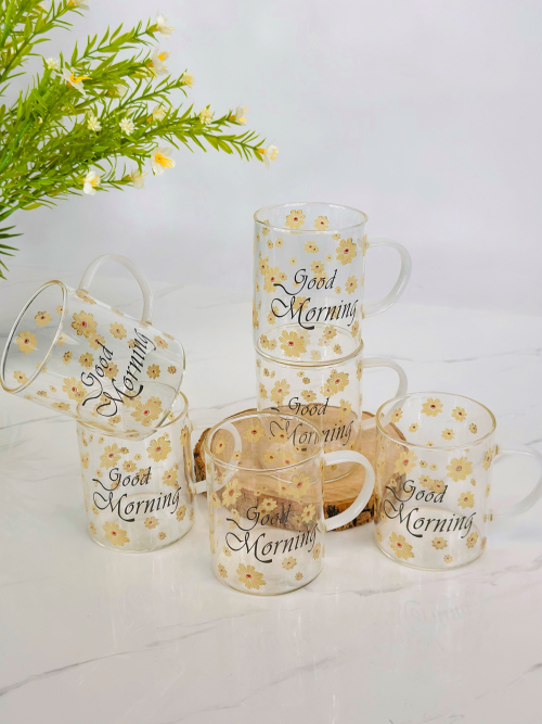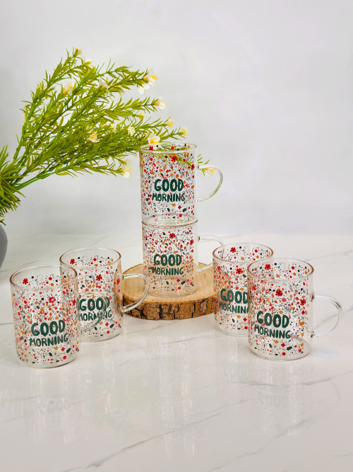 طقم 6 اكوب شايي زجاج شكل برميل سادة