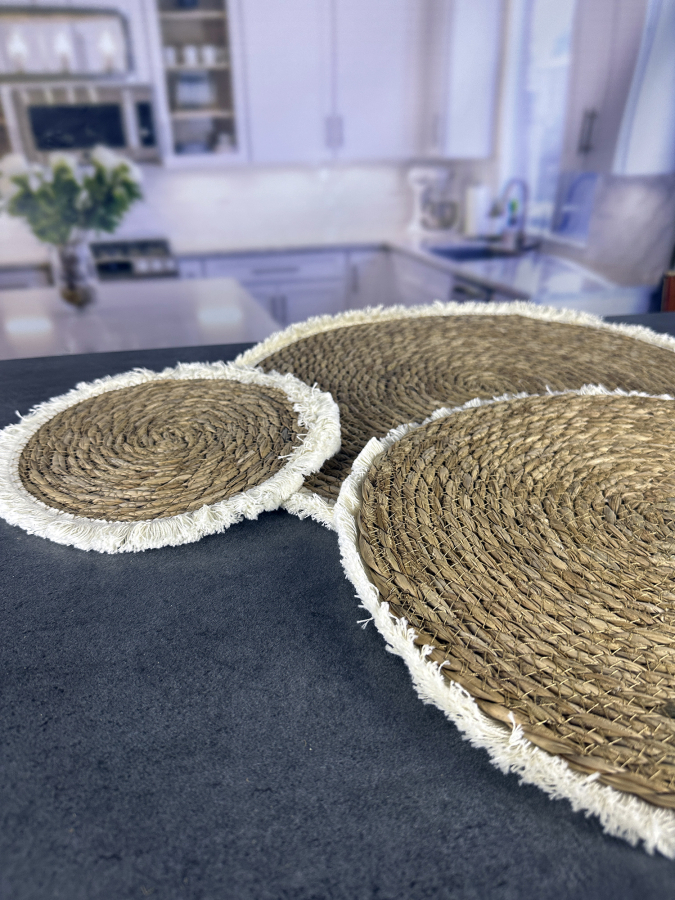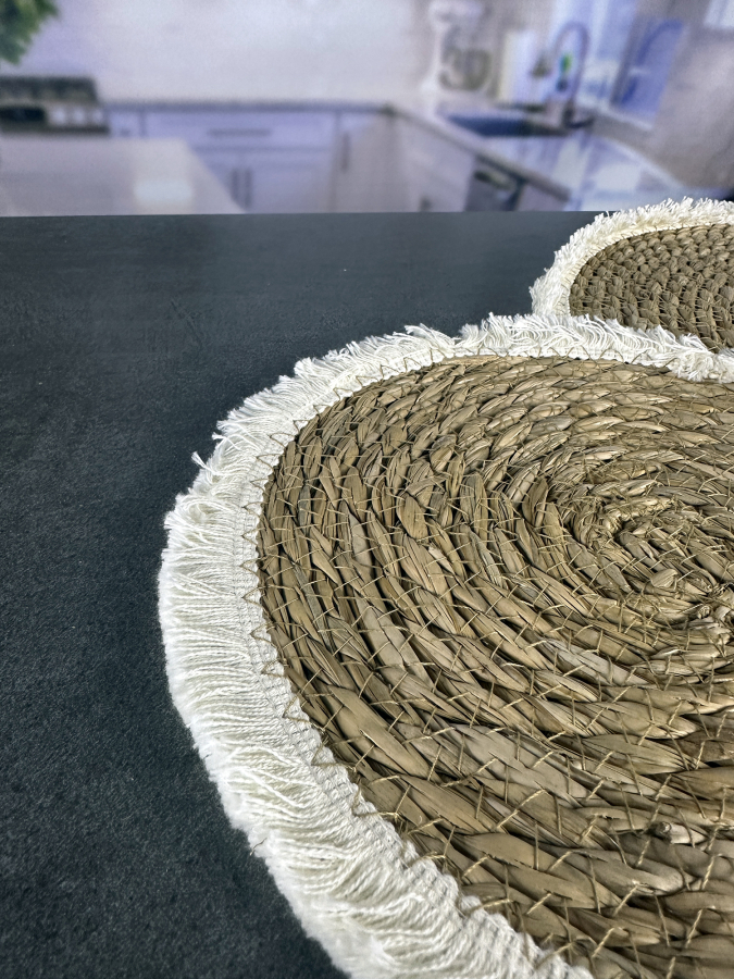 خوص جوه صحون و جدرية وسط اطار ابیض 30 سم