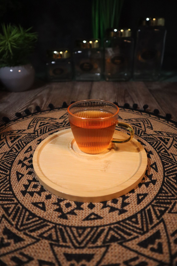 طقم سكر وشايي زجاج قبق خشبي رباعي