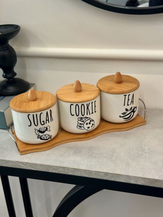 طقم علب بهارات ١٠سم و صيني بامبو
