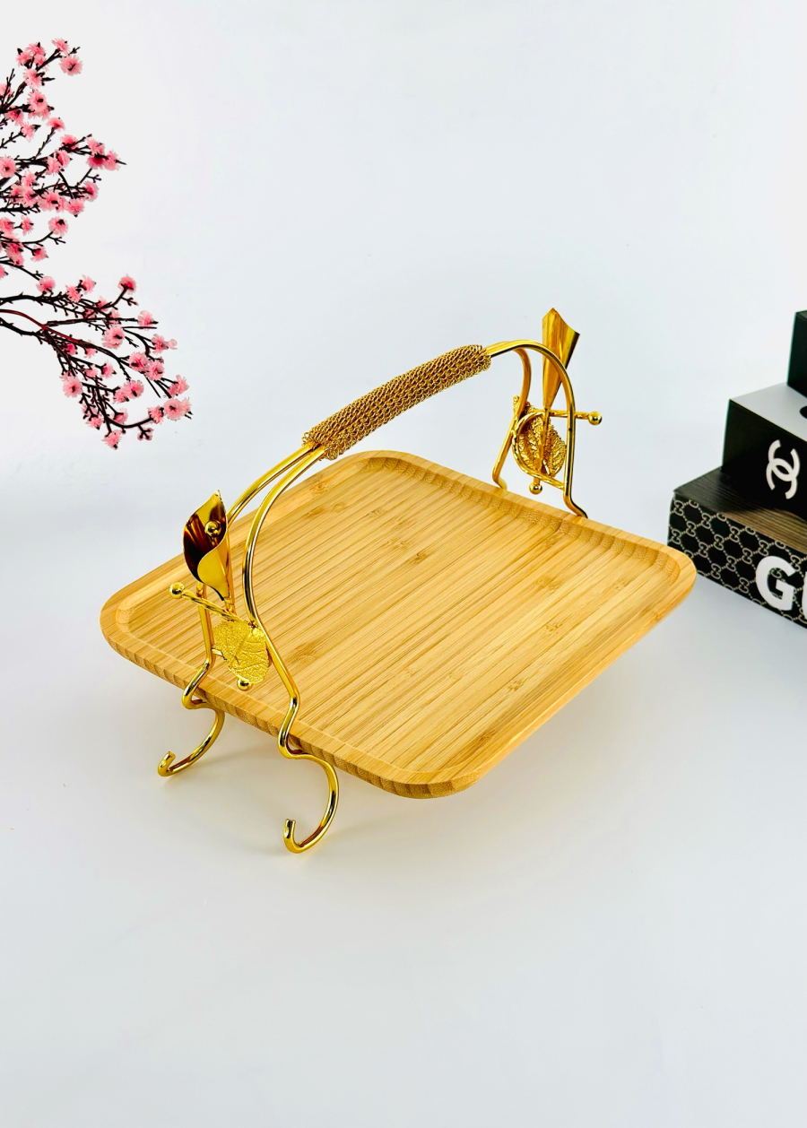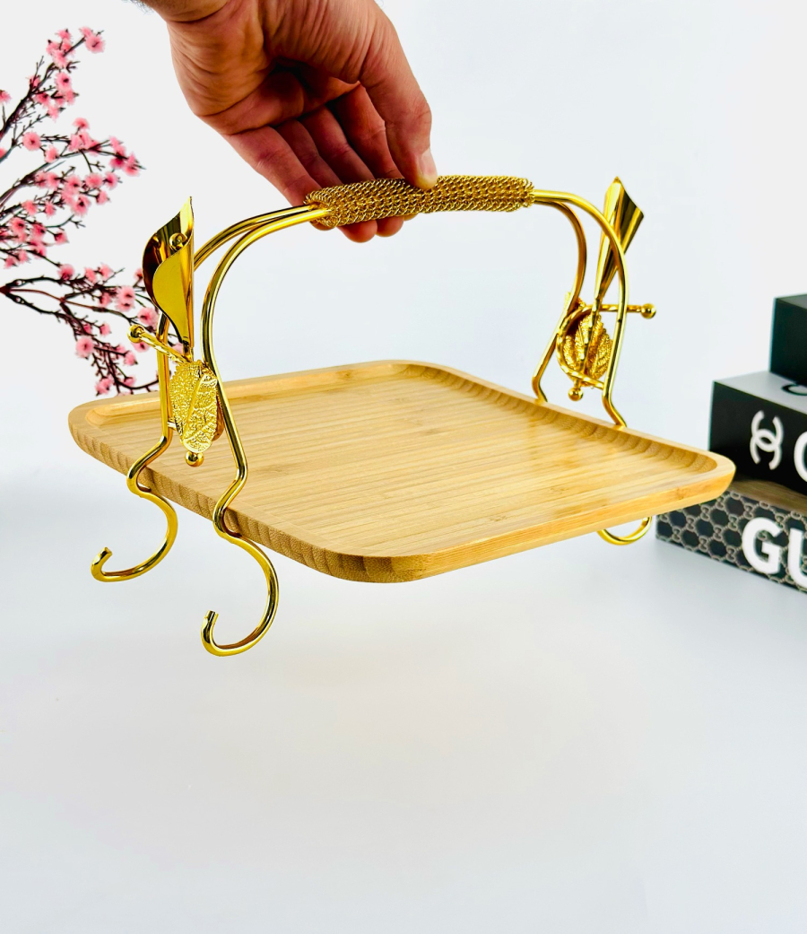 حافظة مربع حلويات اطار ذهبي وسط