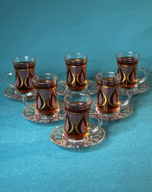 طقم اكوب و صحن اطار ذهبي زكزاك 6عدد