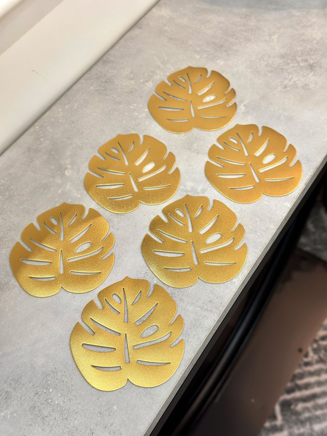 طقم مفرش اكوب شكل ورق ذهبي ٦ قطعة