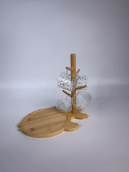 طقم سكر و شايي و قهوه سيراميك و قاعدة بامبو bh-3