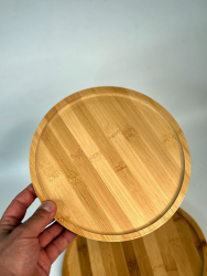 طقم سكر و شايي و قهوه سيراميك و قاعدة بامبو bh-2