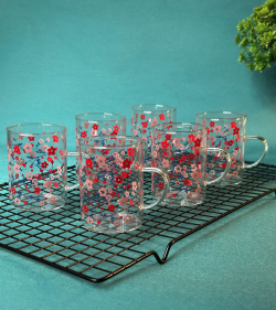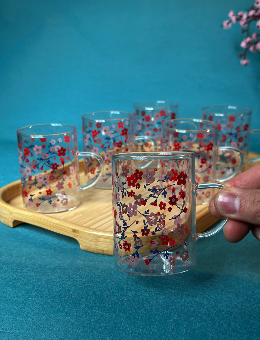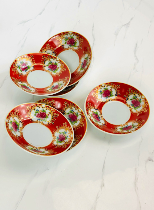 صحن استكانه سيراميك زهرة احمر 6 عدد