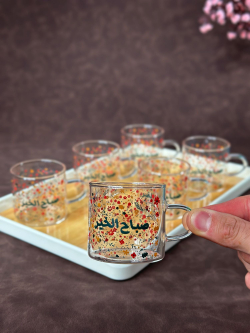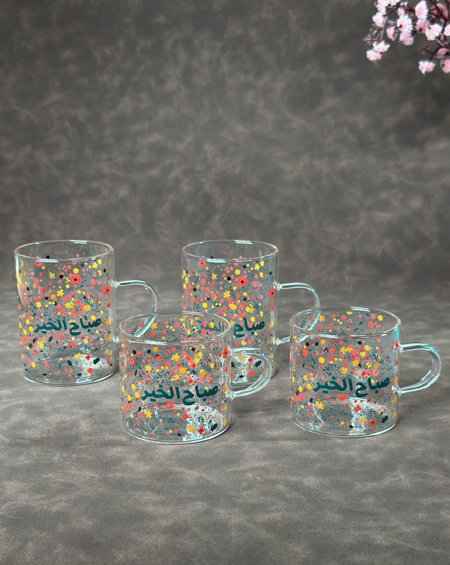 طقم سكر وشايي زجاج 4 قطعة قرن غزال