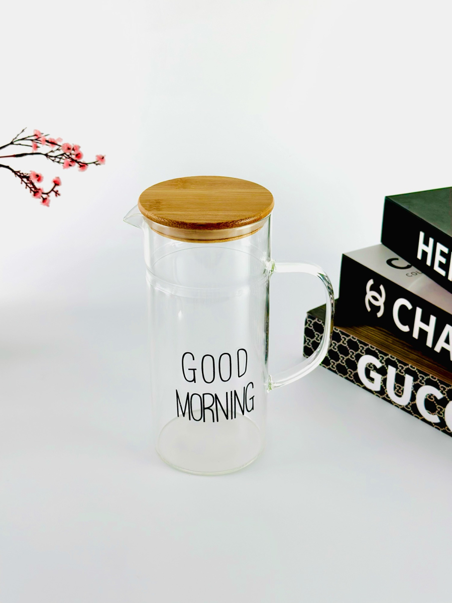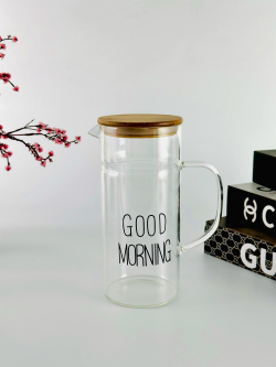 طقم سكر وشايي سراميك مصور مع ستاند بامبو قياس كبير