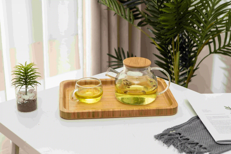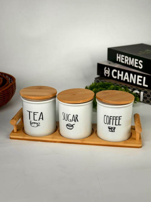 طقم سكر وشايي سيراميك قاعدة بامبو صغير 42