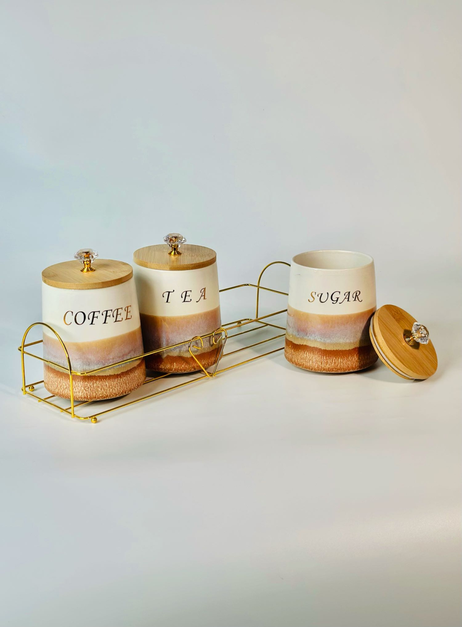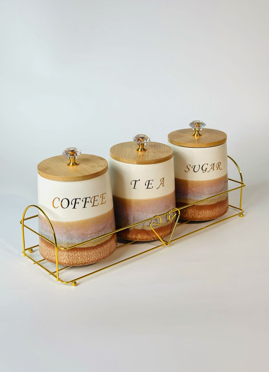 طقم سكر وشايي سيراميك قاعدة ذهبي C