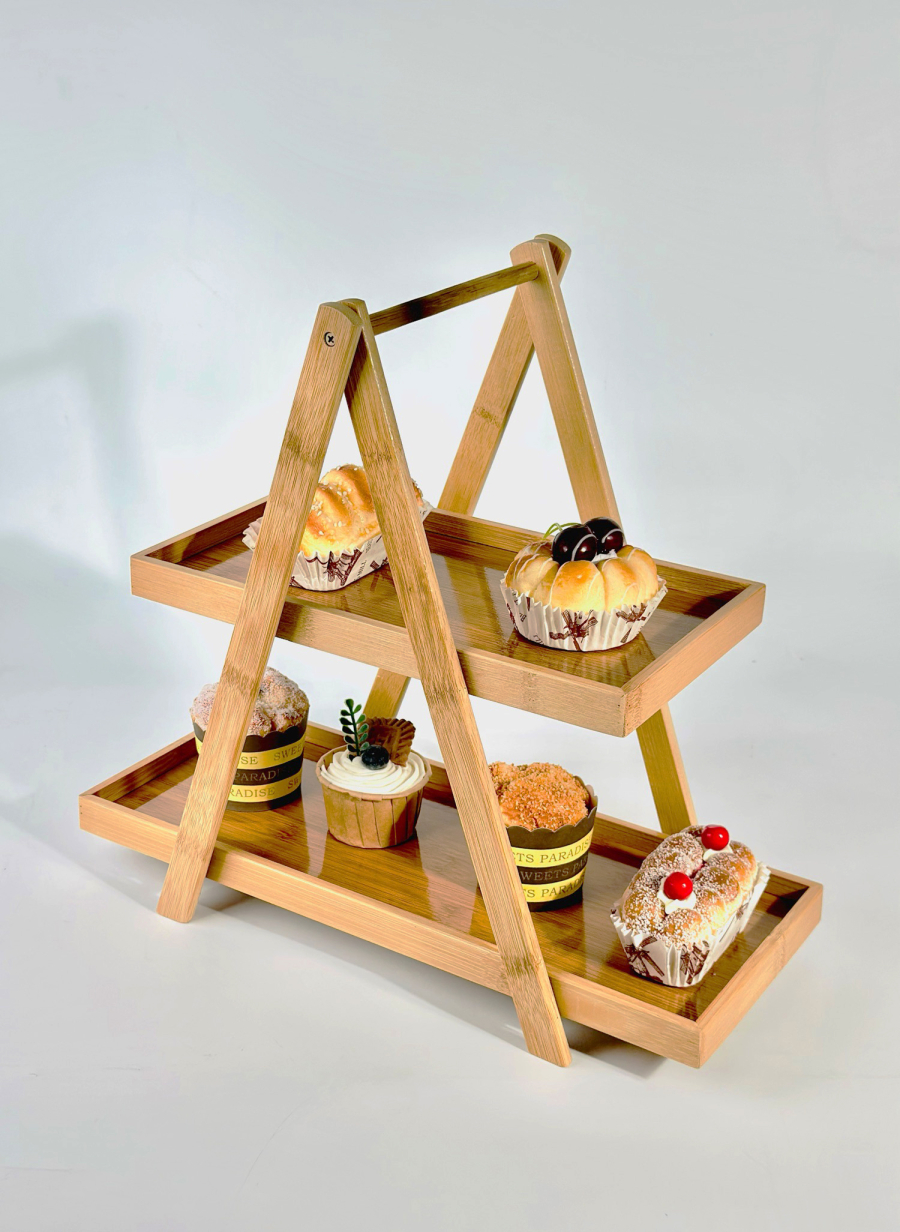 رف منظم بامبو ثلاث طبق بلاستيك شكل خوص کبیر 40*40*20سم