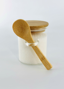 طقم سكر وشايي زجاج ثلاثي ويه ملاعق و قبق خشبي