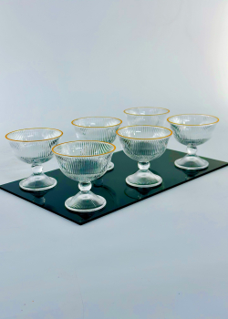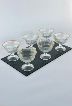 طقم اكوب و صحن اطار ذهبي زكزاك 6عدد