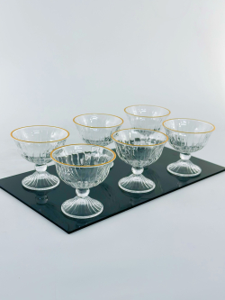 طقم 6 عدد کاسە کاستر کبیر عميق زجاج اطار ذهبي V-25