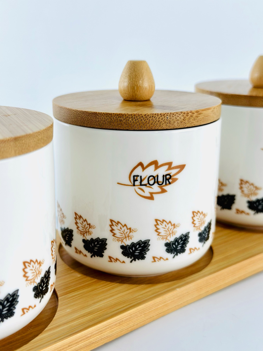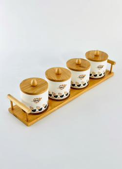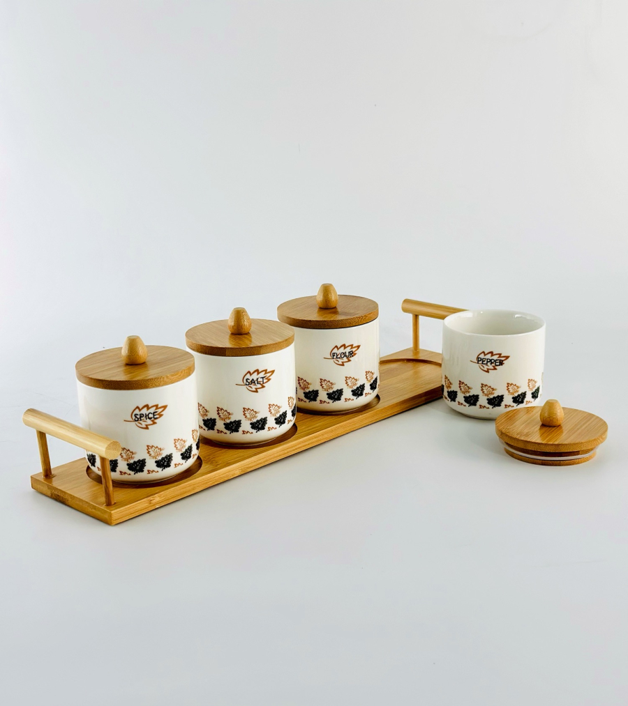 سيت بهارات رباعي سيراميك مع ستاند بامبو 4063