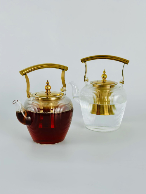 طقم كتلي و قوري زجاج بايريكس اصلي يد ذهبي