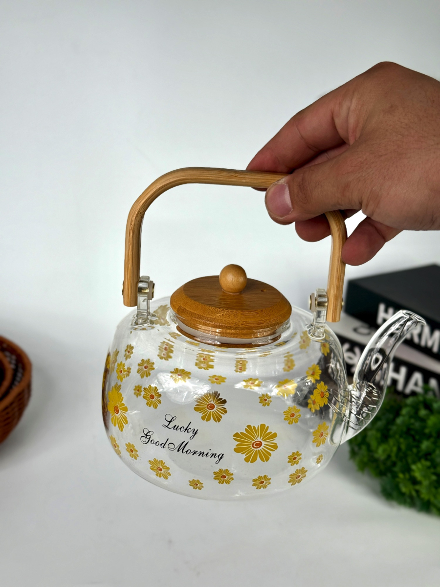 قوري زجاج بايريكس good morning يد بامبو كبير
