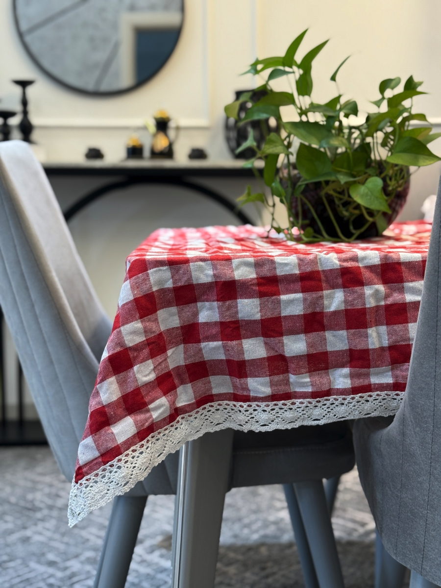 غلاف طاولە احمر مربعات 140x180 اطار نقش