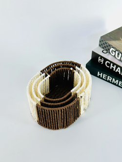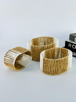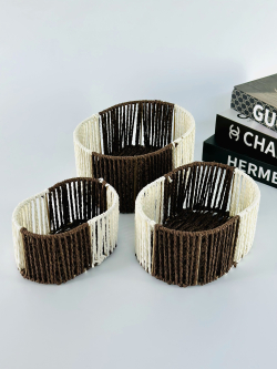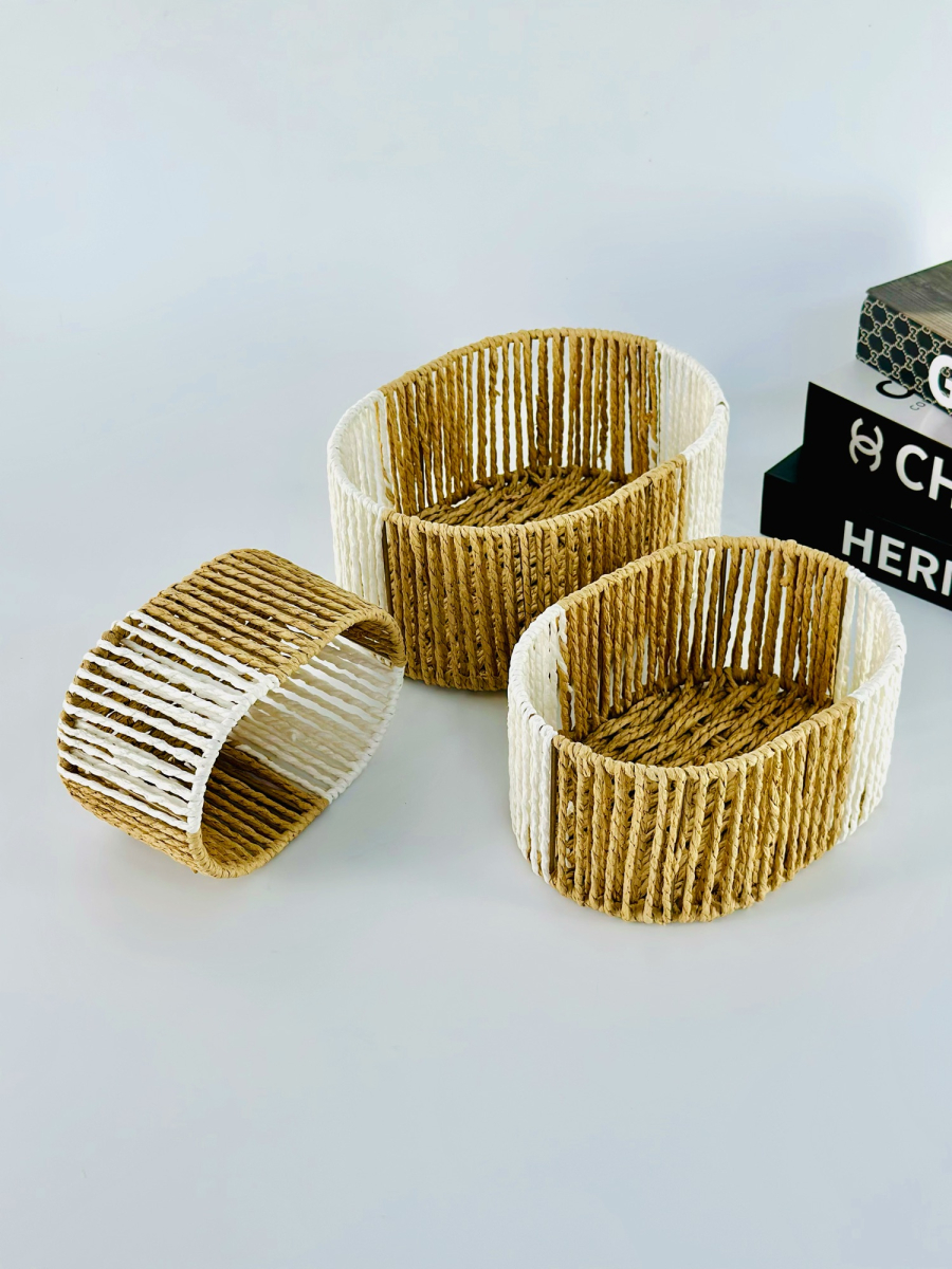 طقم سلة خوص دائري ثلاثي يد خشبي