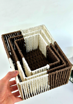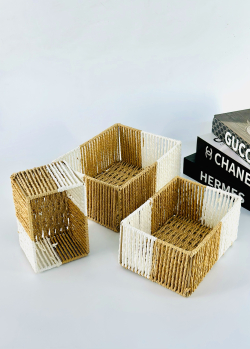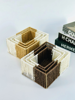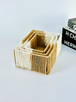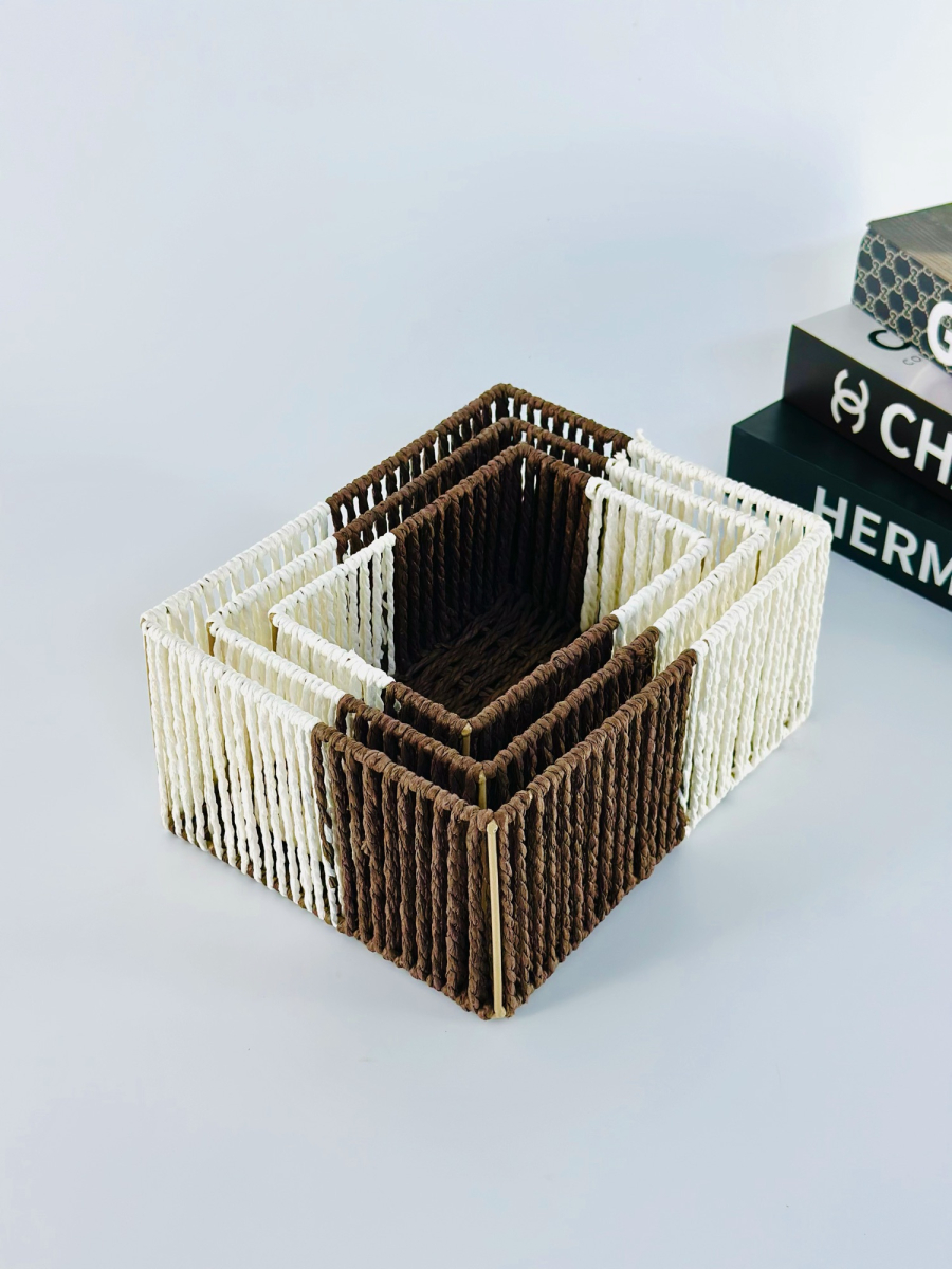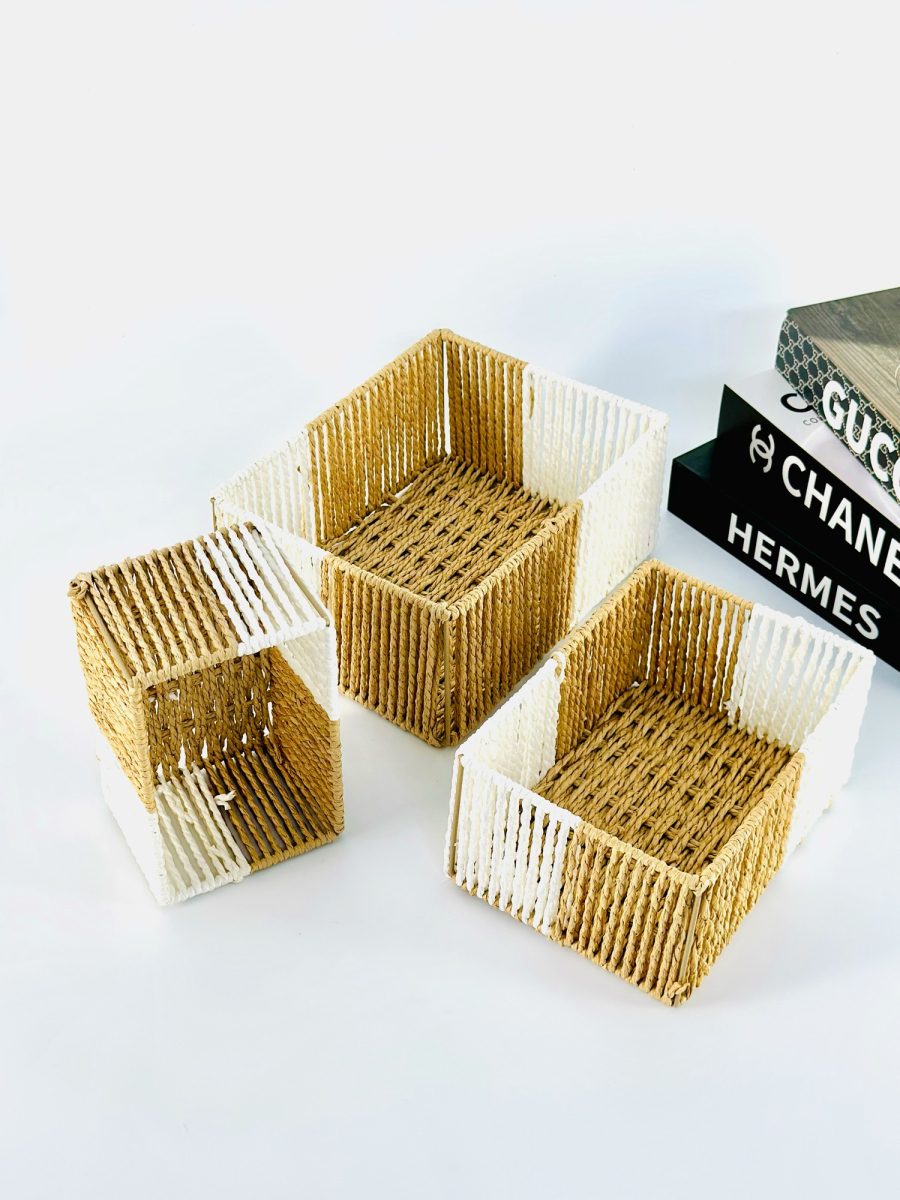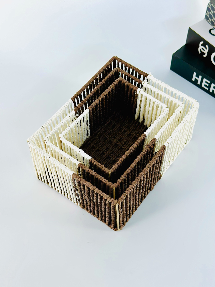 طقم سلة ثلاثي مستطيل عمق لونين