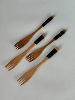 طقم سلة خوص دائري ثلاثي يد خشبي