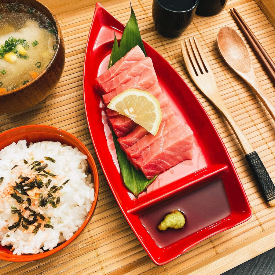 طقم صيني بامبو مستطيل ثلاثي يد ذهبي