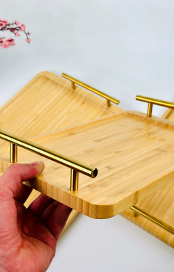 طقم صيني بامبو مستطيل ثلاثي يد ذهبي