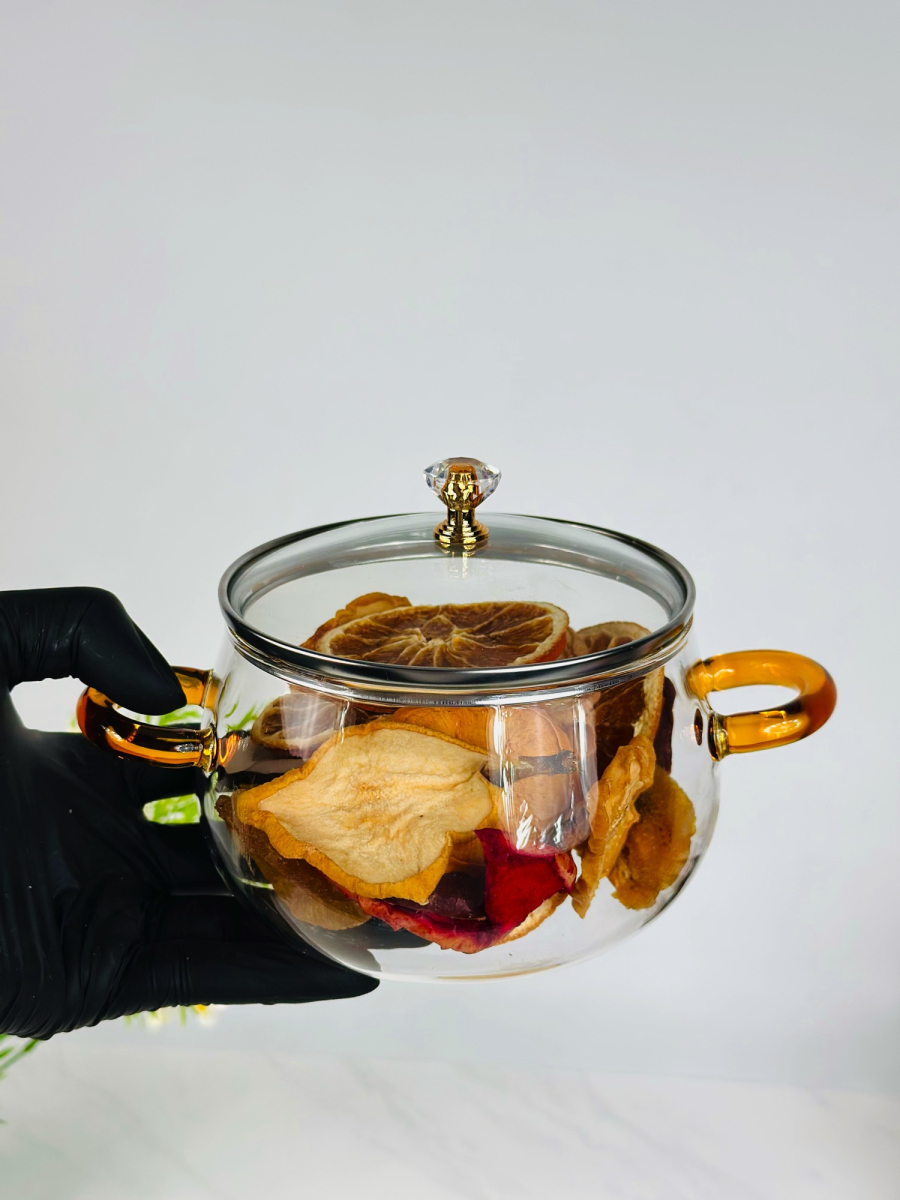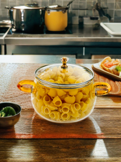 قوري زجاج بايريكس اصلي يدة خشب طبيعي