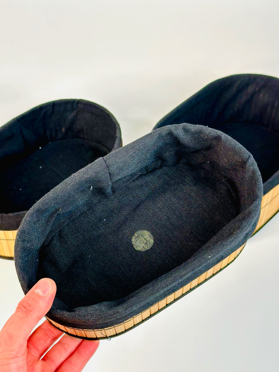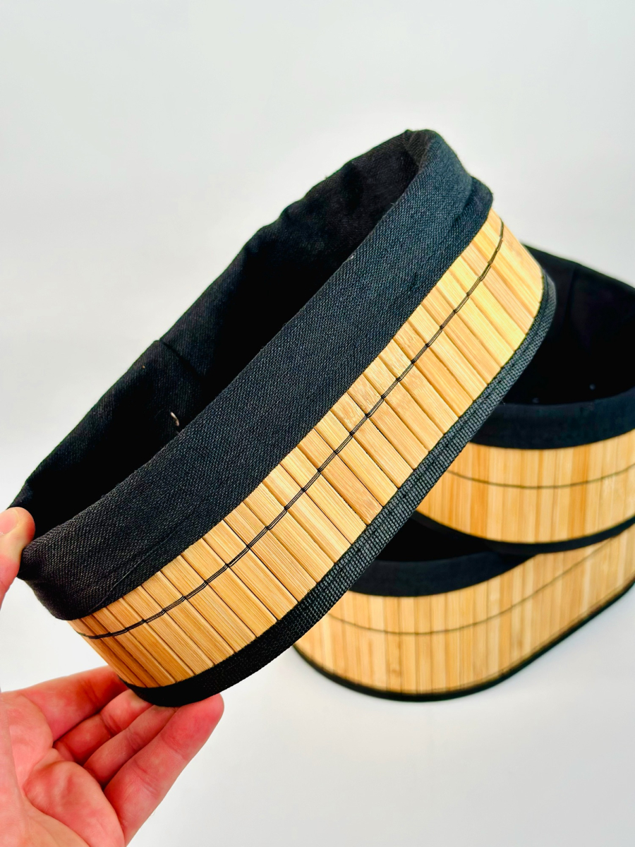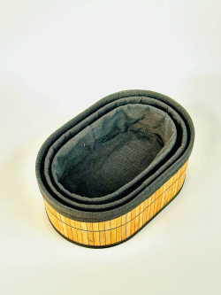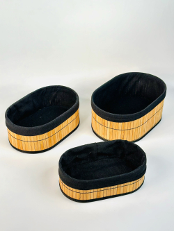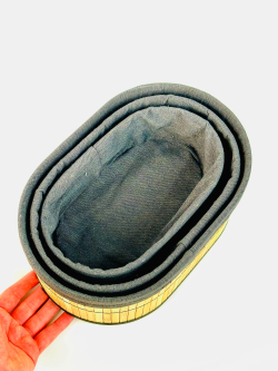 طقم سلة خوص ثلاثي بيضوي داخل اقمشة اسود
