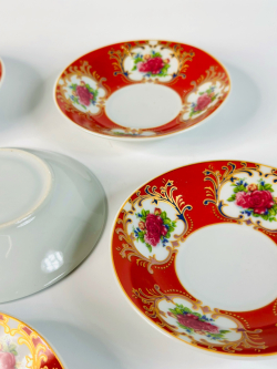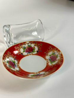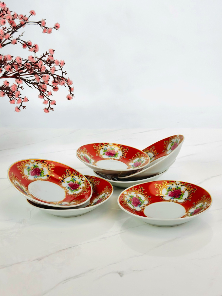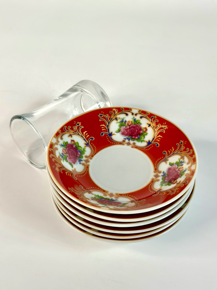 صحن استكانه سيراميك زهرة احمر 6 عدد