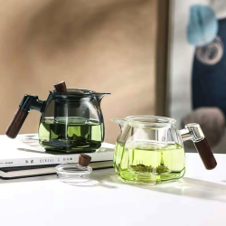 قوري زجاج بايريكس اصلي يدة خشب طبيعي