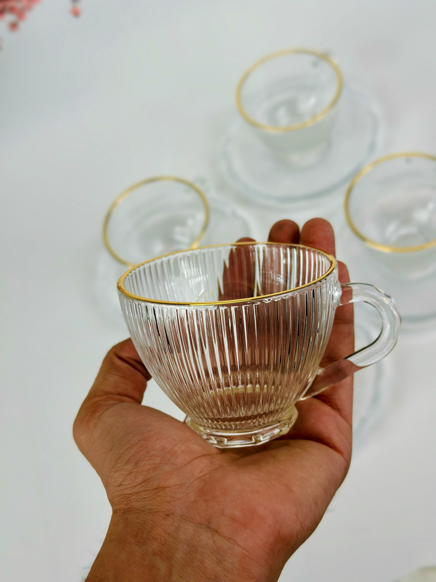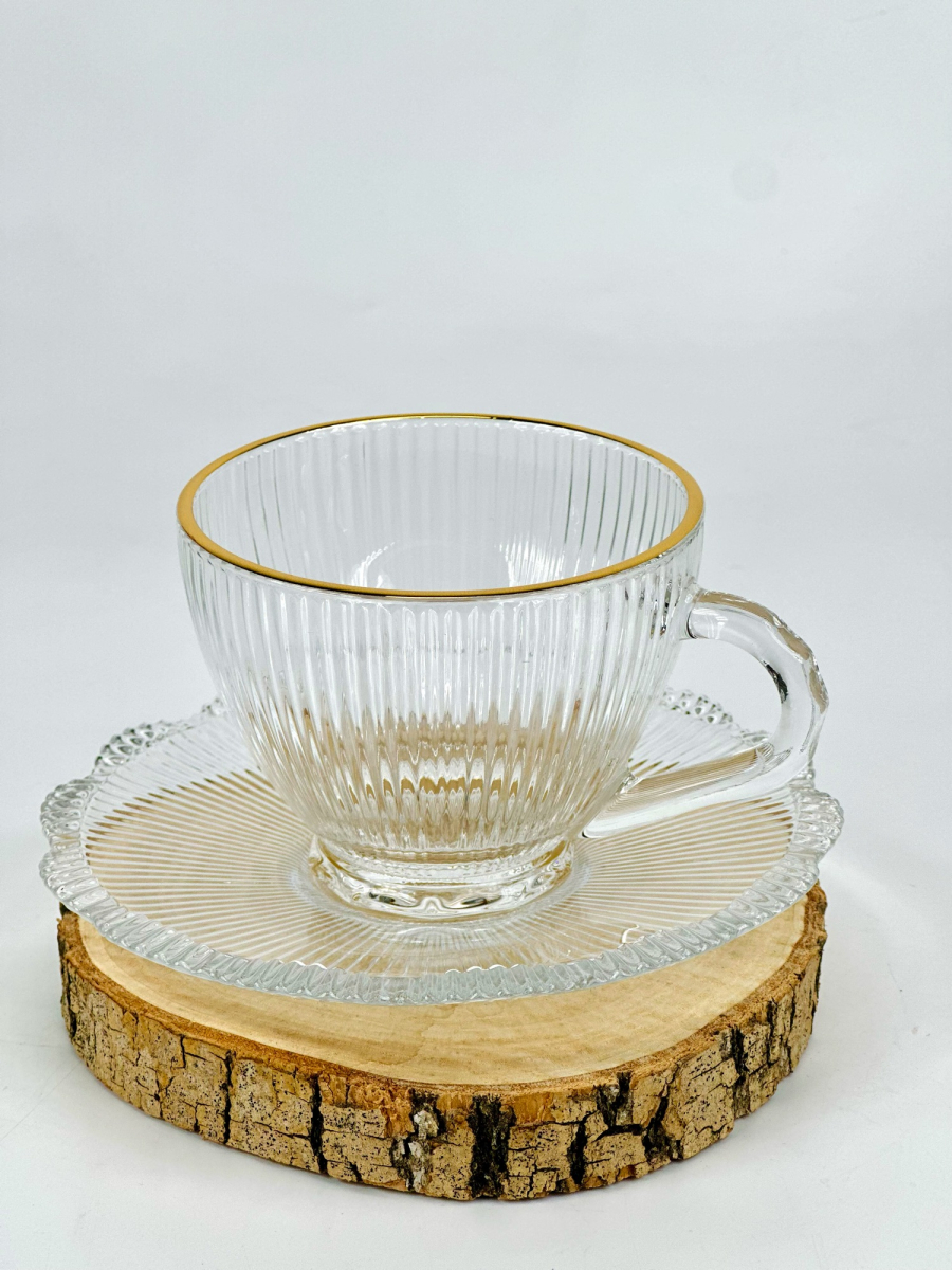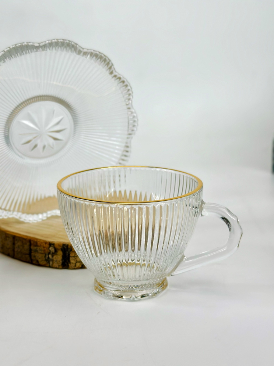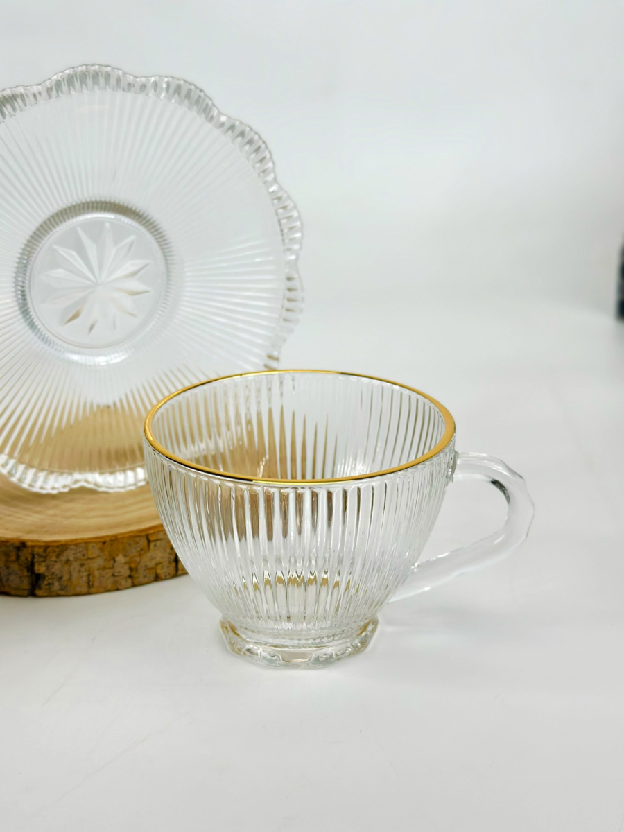 طقم اكوب و صحن اطار ذهبي زكزاك 6عدد