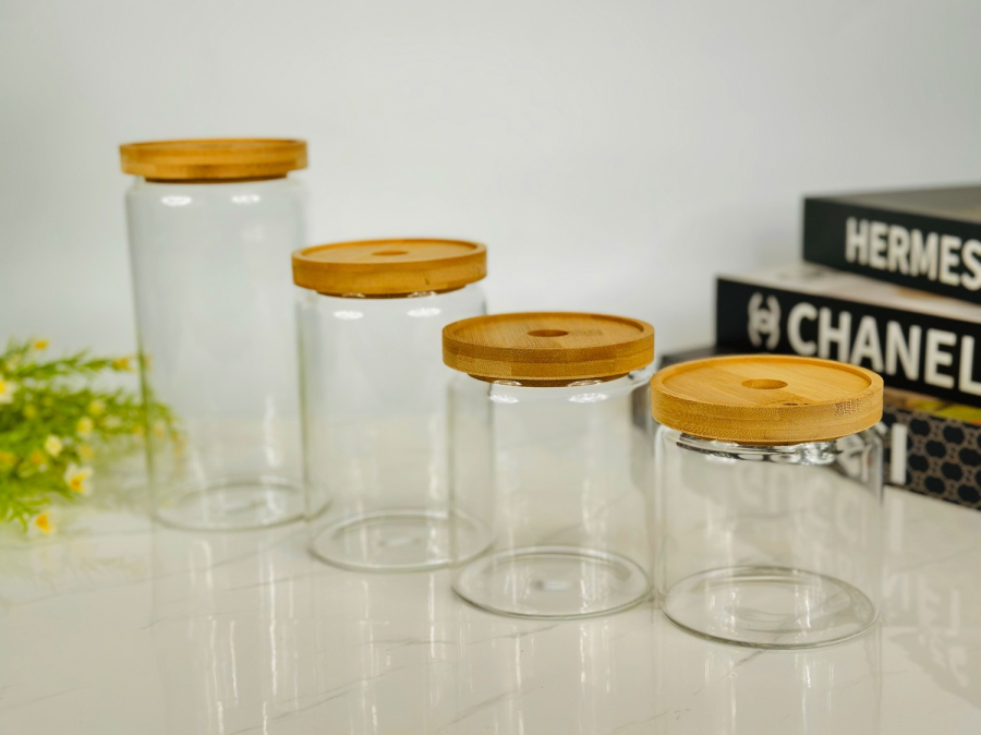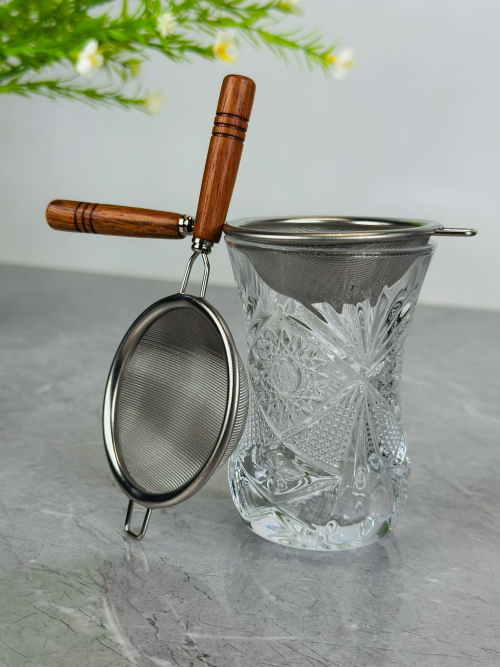 طقم سكر وشايي زجاج قبق خشبي رباعي