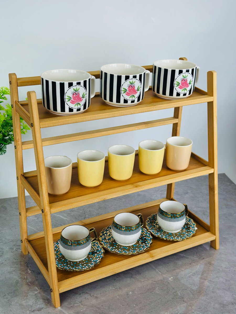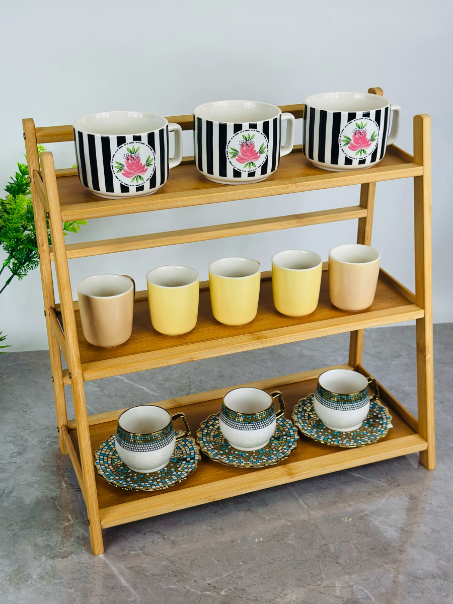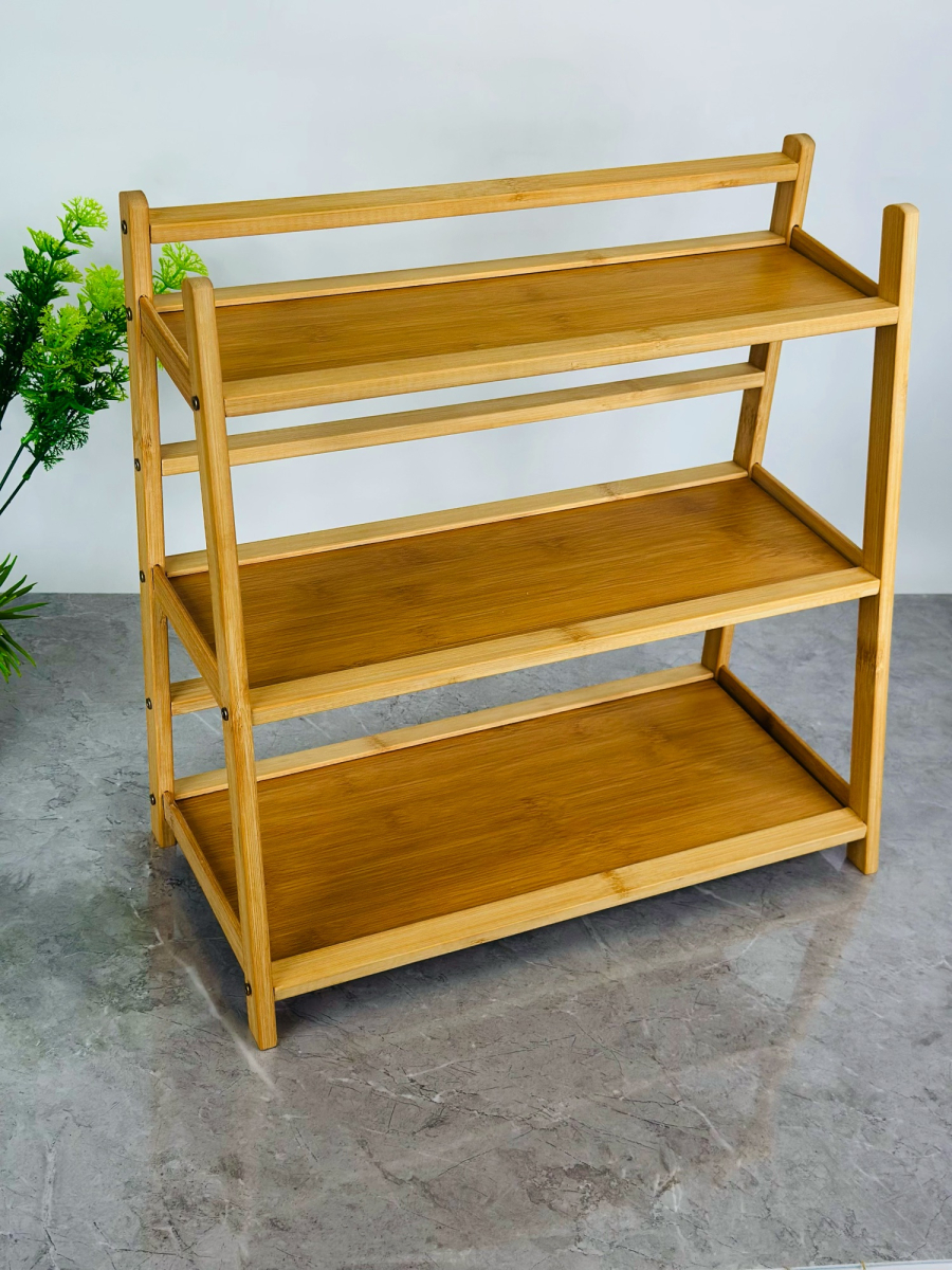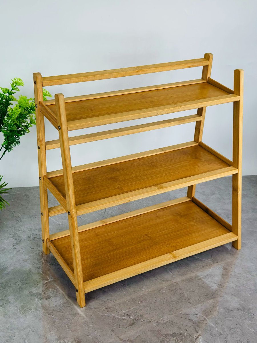 رف منظم بامبو ثلاث طبق خشبي کبیر 40*40*20سم