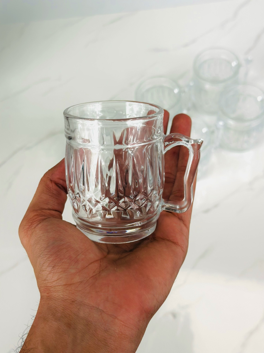 طقم 6 اكوب شايي زجاج شكل برميل سادة