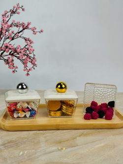 طقم صيني خشب بامبو ثلاثي نقش E-17 قهوائي