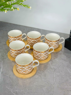 طقم 6 اكوب شايي زجاج اطار ذهبي
