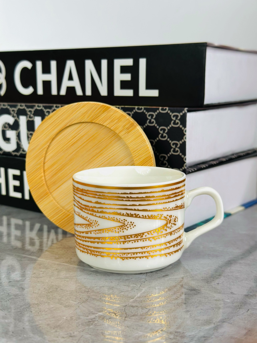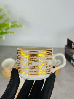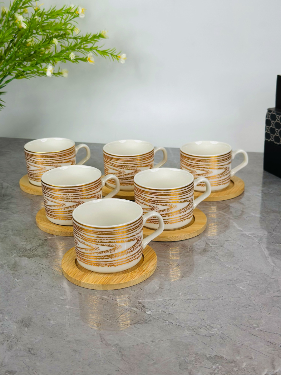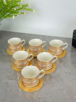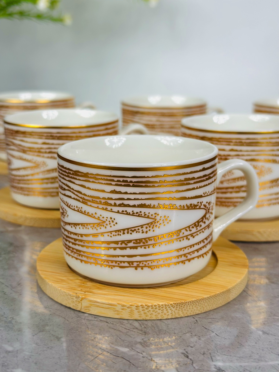 طقم اكوب و صحن اطار ذهبي زكزاك 6عدد