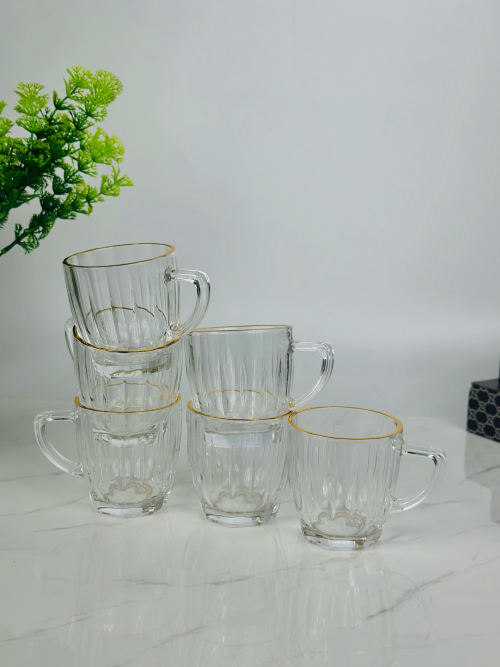 طقم 6 اكوب شايي زجاج اطار ذهبي