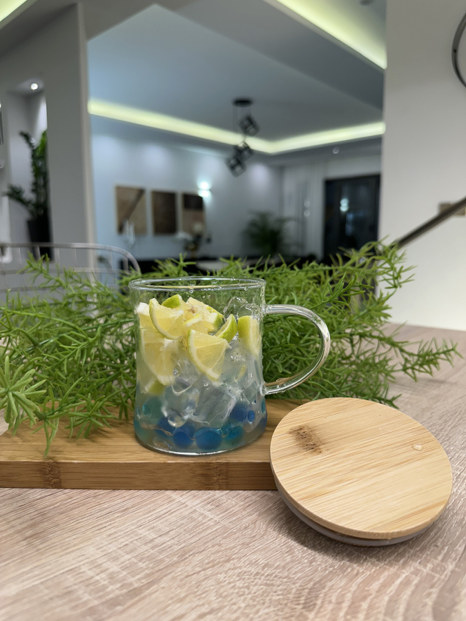 طقم سكر وشايي زجاج قبق خشبي رباعي